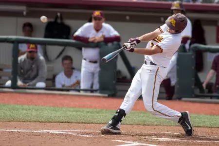 The Maroon and Gold struck first in the fourth inning. Jordan Kozicky led off the inning and was struck by a pitch. Micah Coffey followed that with a double to right field, advancing Kozicky to third base. Toby Hanson drove in Kozicky with a single up the middle to give Minnesota 1-0 lead.